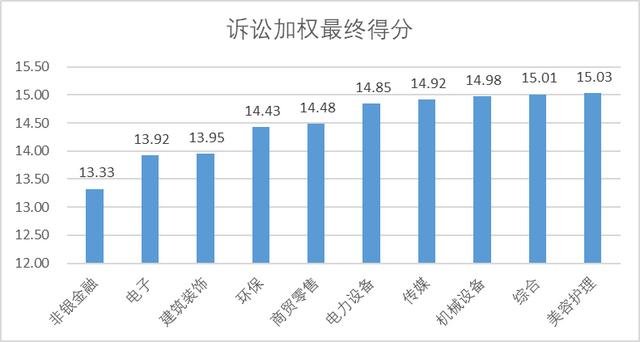 图:诉讼加权行业平均分,来源:锦缎研究院