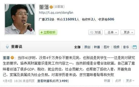 早在10年前,北师大教授董藩就曾对学生公开喊话,40岁时要达到4000万身家,否则“不要来见我”。