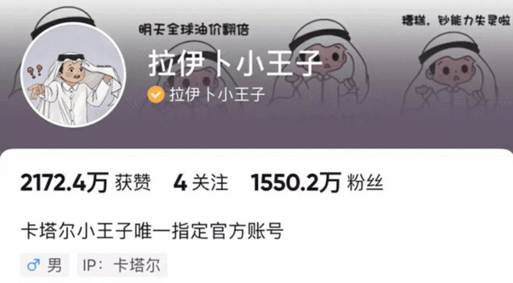 2022年世界杯,所谓的“卡塔尔小王子”在国内互联网意外走红,入驻短视频平台后,一天内涨粉千万,比卡塔尔的人口还多上好几倍。