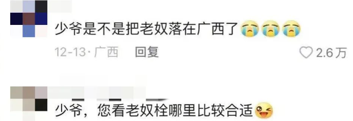 一如“少爷”需要“奴才”,“异国王子”的账号评论区里大家则是组团要去“和亲”。