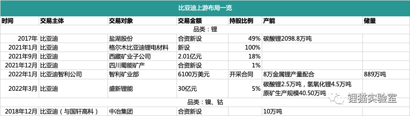比亚迪则主要专注于锂盐。
