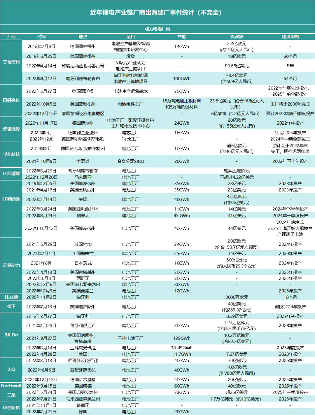 除了国内扩产之外,中国的新能源汽车以及动力电池卷向海外也是趋势之一。