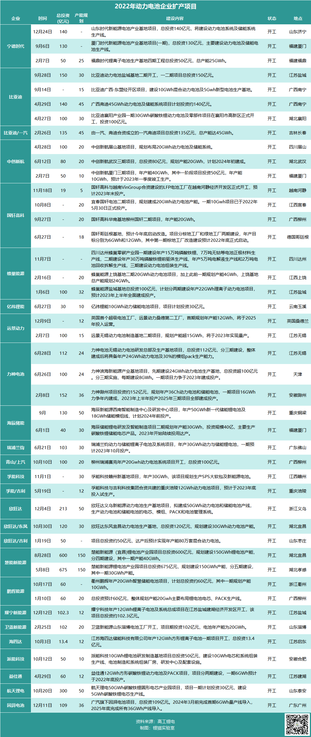 其中,总投资额在100亿以上的有23个,而且,与前几年相比,今年开始,动力电池企业的扩产出现了多个项目基地同时动工的现象。