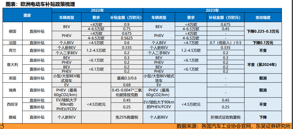 在这个背景之下,多个国家将于2023年起补贴下降或取消、征收增值税等,预计欧洲的销量将迎来大幅提升的增速。