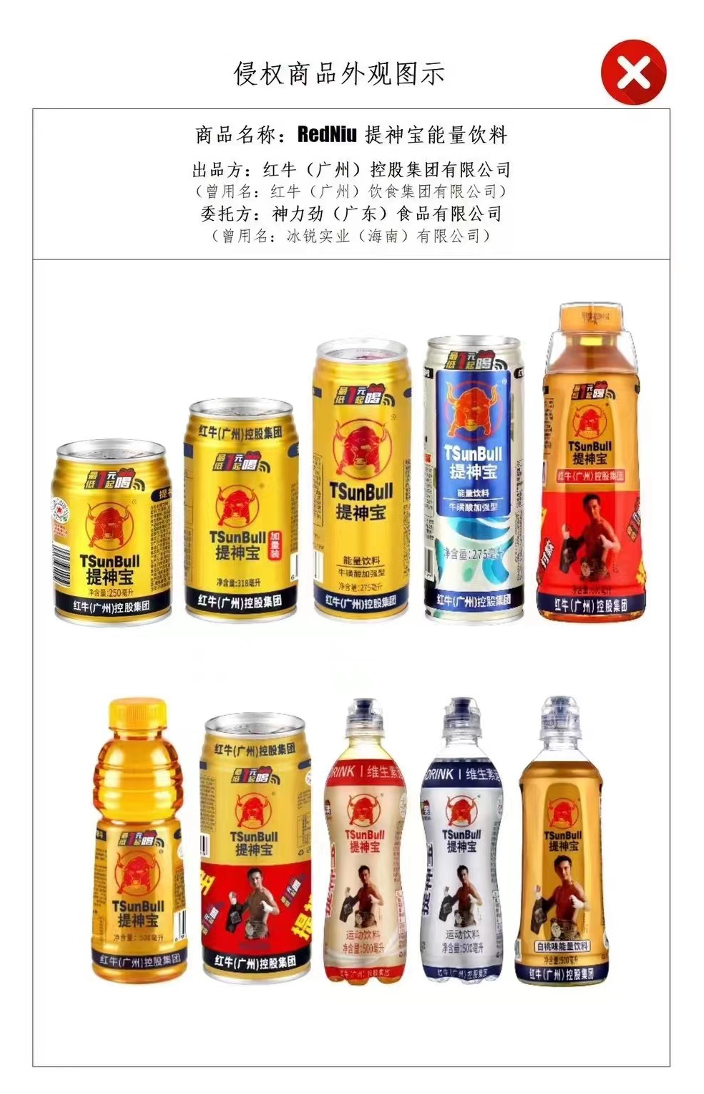 据了解,本案所涉侵权产品是一款名为“RedNiu提神宝”的饮料,出品方为广州红牛。而据天丝公司陈述,这款饮料从名称到包装全面摹仿天丝公司的红牛产品;而围绕着“RedNiu提神宝”,被告方具体构成了三项不正当竞争行为: