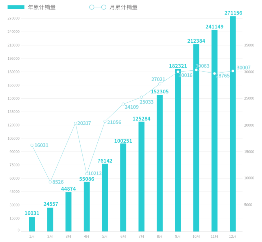 比亚迪仍然以12月23.5万辆,全年186.85万辆的销量数据稳稳占据国内新能源汽车市场的龙头地位。