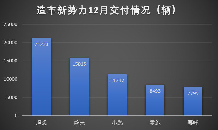 在12月的交付数据上,理想、蔚来以及小鹏也重新回到造车新势力第一梯队