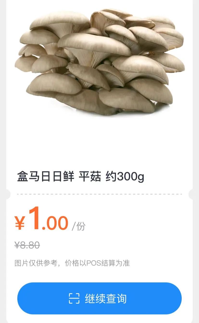 领悟了询价方式之后,扫码镜头就仿佛获得了魔法加持。我们开始兴奋地扫射身边每一个货品,像开盲盒一样快活无比。原价的小排,令人失望(且费解);七折的瓜果,算是差强人意;半价的鲜奶,这才像样嘛……泡泡玛特看了直呼内行。
