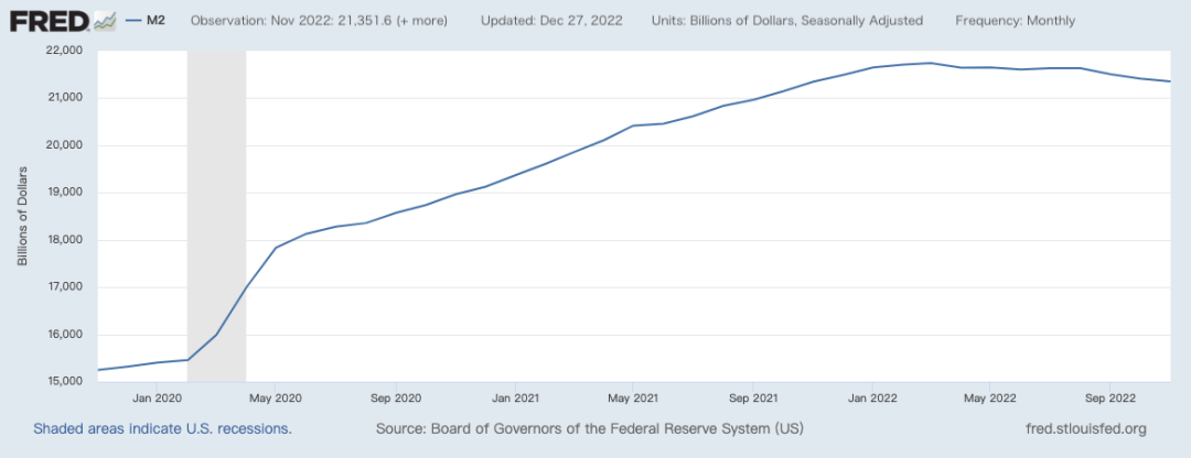 2020年新冠伊始,美联储通过一系列积极的货币政策持续扩表。一方面虽然11月通胀率有所回调,但仍然超过7%,M2持续走高;另一方面美元指数也在持续走高。