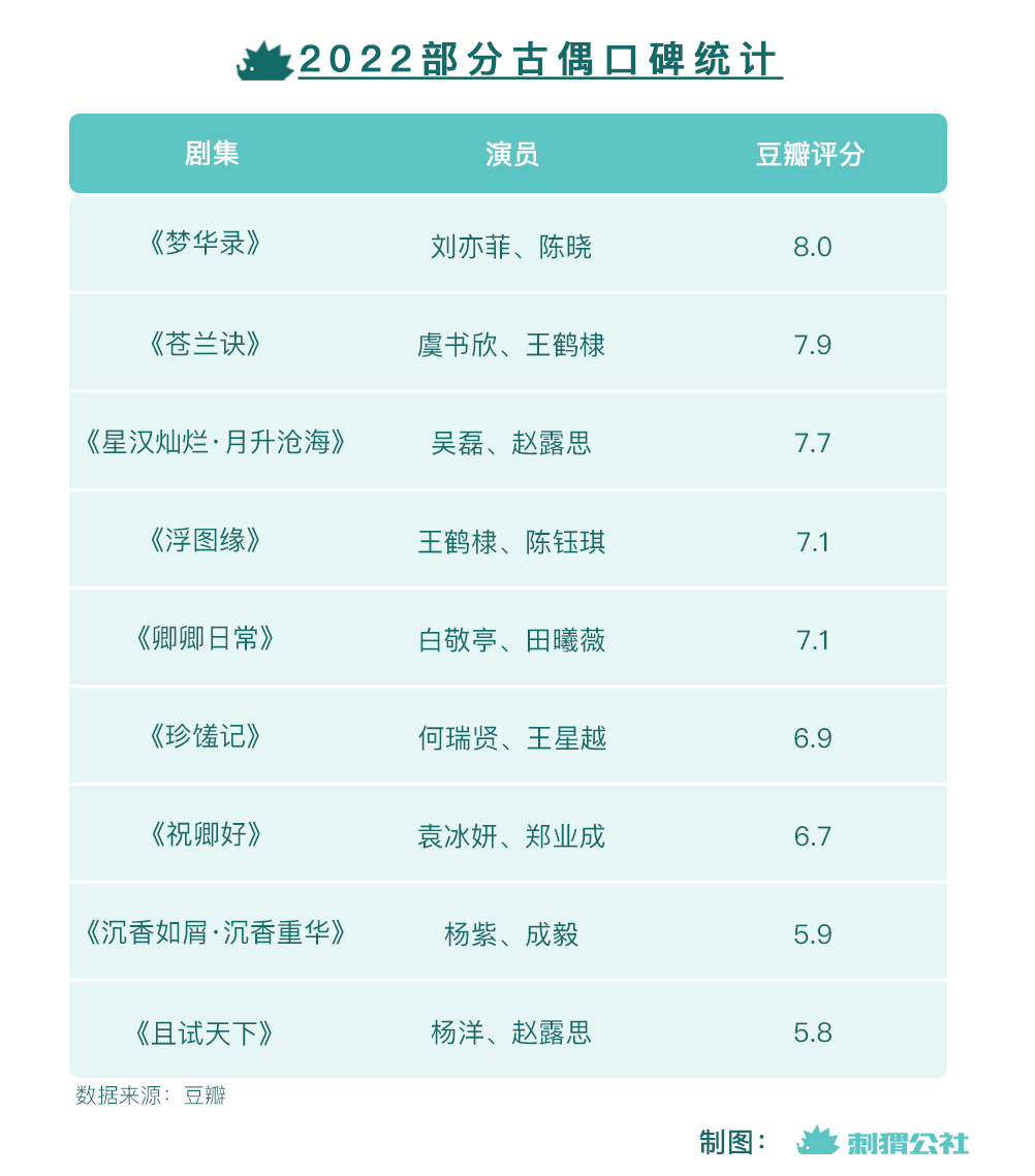 用“合适的选角”挽回逝去的CP感,用适度的流量为剧集保驾护航,用美学形成视觉冲击,让OST也成为出圈利器,2022古偶的成绩,是美学、内容、选角、音乐的一次全方位的胜利。
