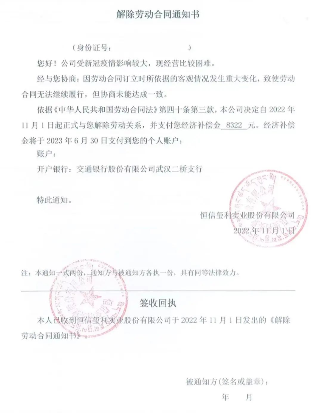 南希无奈,虽然现在自己的仲裁已经走到等法庭判决的时候,但部分同事现在正在开庭审理中,而恒信玺利这边并没人来参与开庭。据其了解,目前华南大区还有十几名运营相关的员工去了新注册的公司,欠薪已达7个月,其中就11月份发放了3000元的生活费。