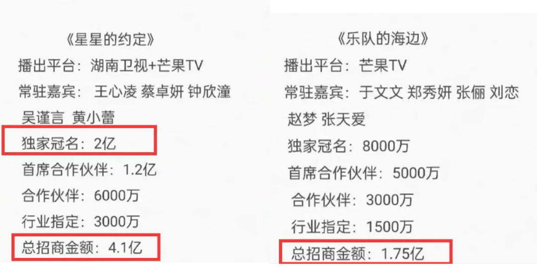 受此影响,《大湾仔的夜2》《星星的约定》《脱口秀小会3》《一起火锅吧3》等衍生综艺都实现独立招商。其中,有消息称,“浪姐”的衍生综艺《星星的约定》邀请到2022年爆火的王心凌,总招商金额达到4.1亿,《乐队的海边》总招商金额也达到1.75亿。