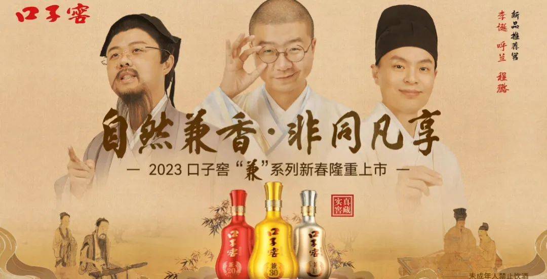 白酒品牌口子窖今年另辟蹊径,妙用了笑果脱口秀演员爱喝酒的人设,结合自身品牌形象策划了李诞、呼兰、程璐组成的“酒仙三人组”系列贺岁短片。穿越古今的中国名画故事爆笑新解,令很多网友直呼“是我今年看过最有创意的短片”。
