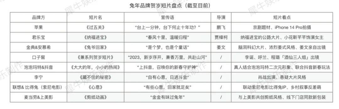 可以看到,今年有些品牌方已经觉察到这一点,很多品牌对于贺岁短片营销转化的探索颇有前瞻性,很值得行业研究和总结。