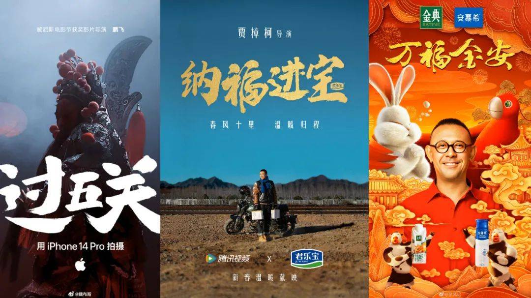 大导演方面,苹果的《过五关》牵手鹏飞拍京剧题材,预告片满满《霸王别姬》内味儿;君乐宝携手贾樟柯打造暖心的《纳福进宝》,片尾还广邀旗下明星代言人组团拜年;金典、安慕希邀姜文首执动画短片,“去月球接兔爷回家”的脑洞创意又飞上了天。