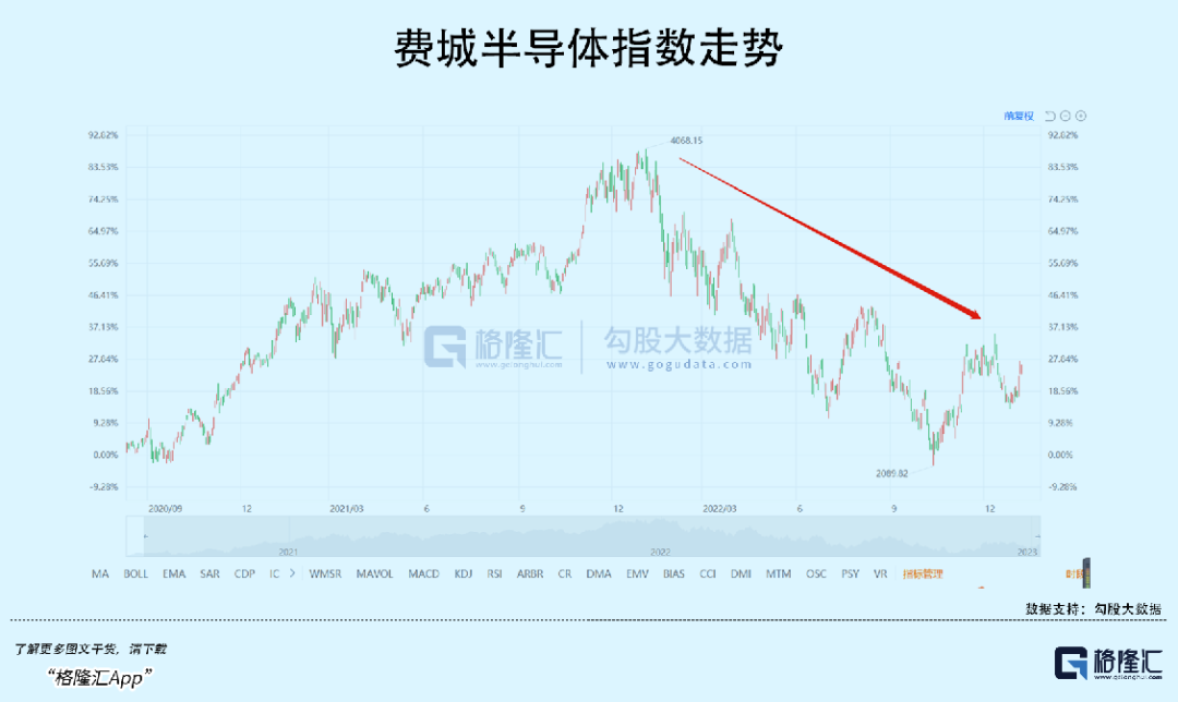 费城半导体指数过去半年的跌幅也非常大,各大半导体公司的股价更是来了一个大回撤,出现业绩和估值的双杀。