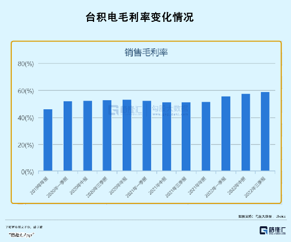 毛利率台积电高达58.54%,虽说最近几个月半导体行业比较惨淡,但台积电的毛利率却在逆势上涨。