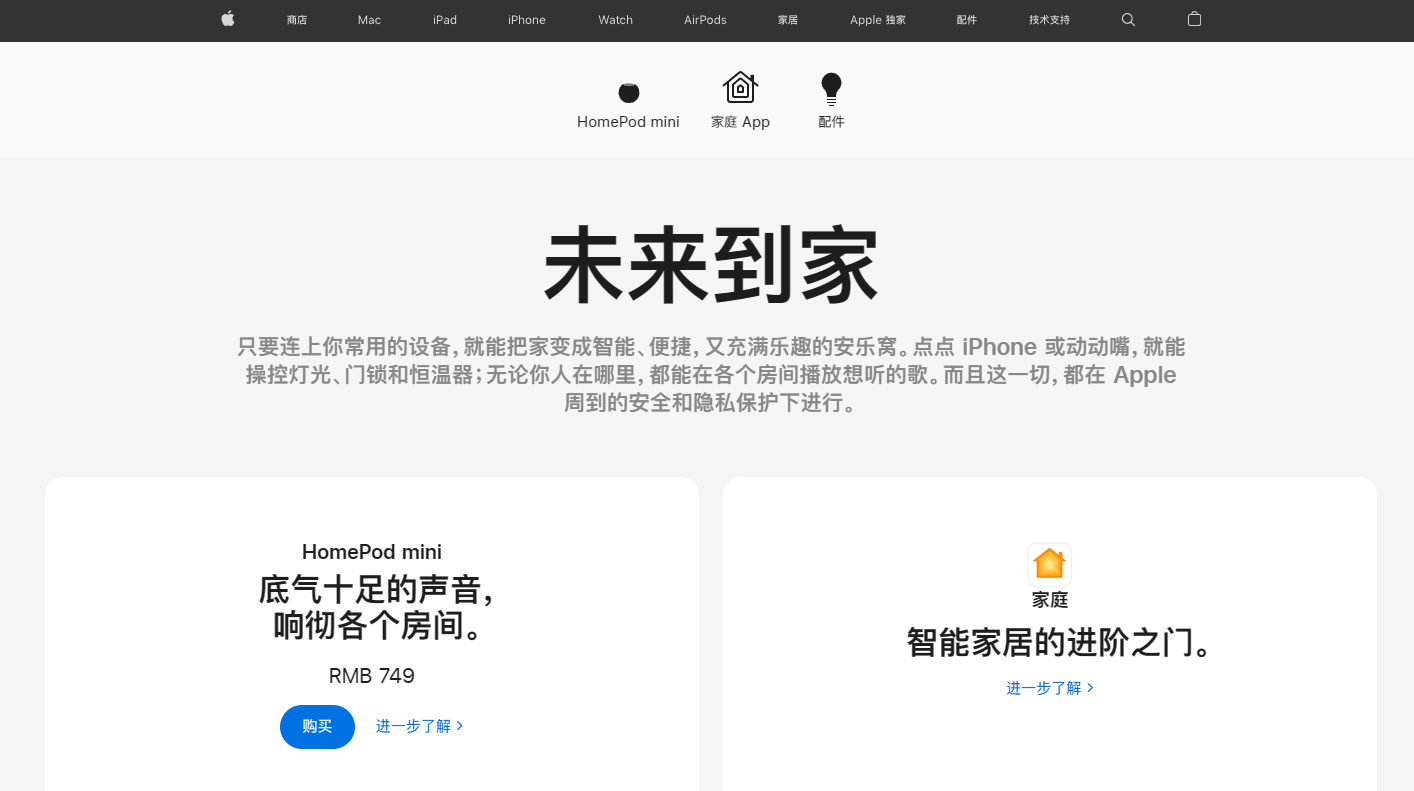 不过,如今他们都迎来最强大的竞争对手,因为苹果也在国内上架了智能家居板块,这可能意味着苹果将正式在中国市场进军智能家居领域。小雷从苹果官网了解到,苹果家居板块分为三个品类,分别为HomePod、家庭App以及配件。前两者不用过多介绍,就是苹果自己的智能音箱以及iPhone上自带的家居操控软件,后面的“配件”才是此次最值得关注的。