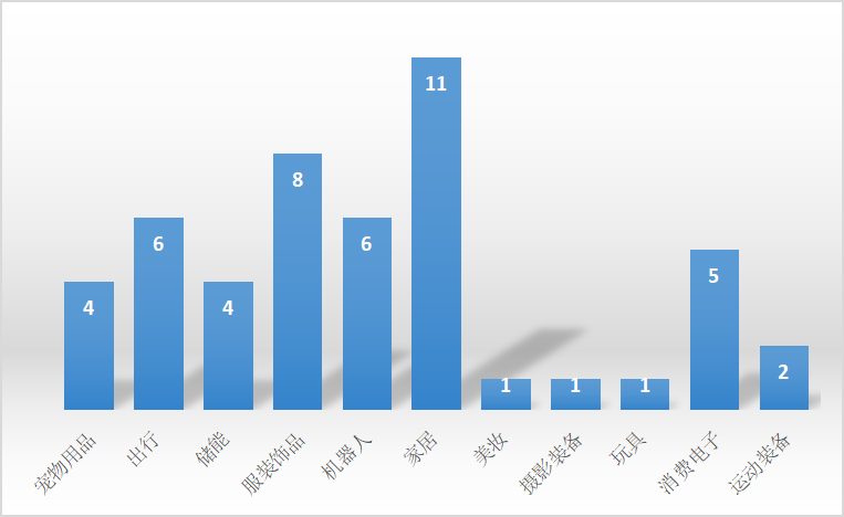 机器人赛道则是“两极分化”比较严重,有两个天使轮融资、两个 B 轮融资,以及一个 A 轮融资,其中融资到 B 轮的两个项目分别是水下机器人和 AI 影像机器人,壁垒相对较高,在下文我们也会详细介绍;而宠物用品、出行、储能、服装饰品几个热门赛道呈现出的分布趋势都是更多地集中于 A 轮阶段。