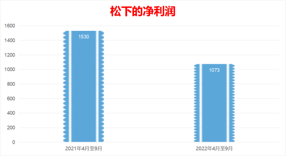 松下2022年4月至9月,净销售额为40639亿日元,去年同期为35336亿日元,同比增长15%;营业利润为1498亿日元,去年同期为2012亿日元,同比减少了25.55%;净利润为1073亿日元,去年同期为1530亿日元,同比减少了29.87%。