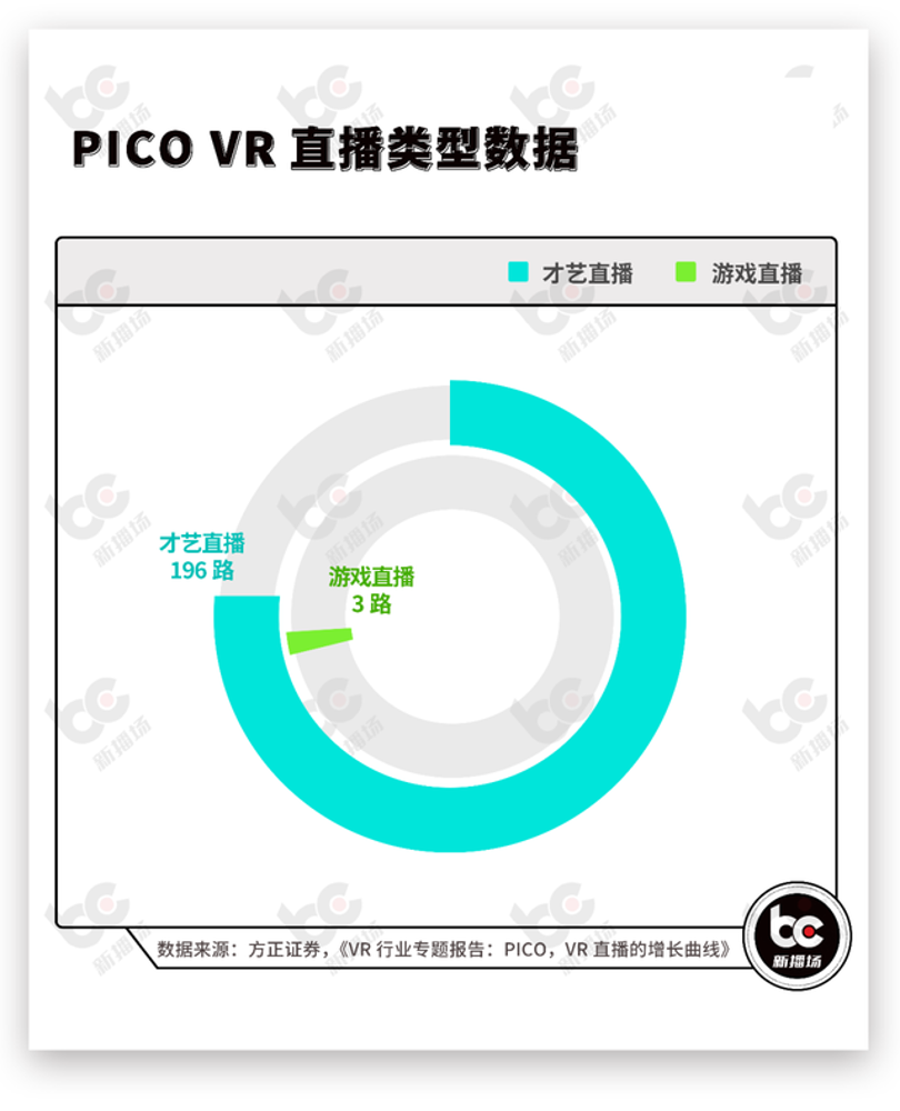 方正证券发布的《VR行业专题报告:Pico,VR直播的增长曲线》中就提到,在对Pico VR统计的199路直播中,才艺直播数量为196路,游戏直播3路,美女已经成为了VR直播的关键词。