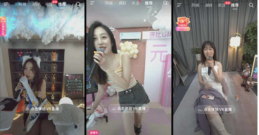 除了用户教育,内容生态搭建也是帮扶的重点。细心的用户不难发现,近期抖音上涌现了许多美女VR直播间,而VR直播的门槛也不高,只需要一套专业设备即可。