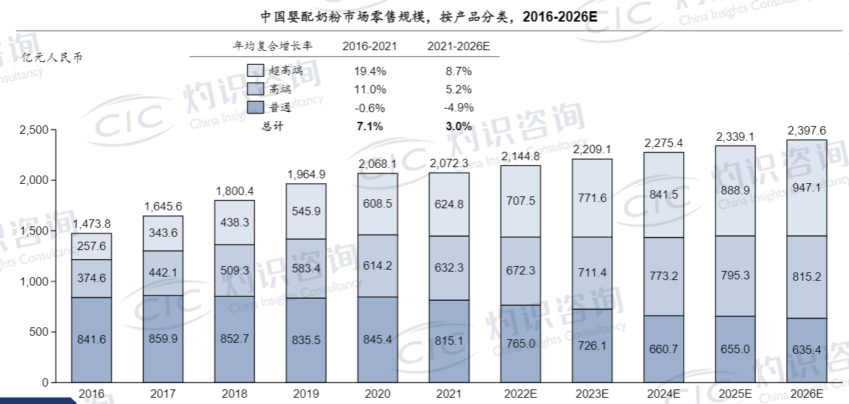 市场空间急剧缩小,再叠加疫情、购买力降低等影响,2020年以后,国内婴幼儿奶粉市场便开始掀起了价格战,高端、超高端品类开始通过降价抢占腰部价格段以下产品的市场空间。