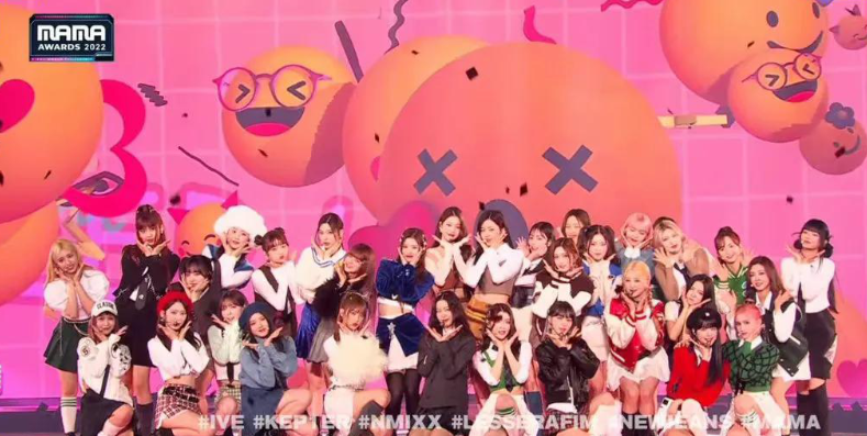 相较于韩国舞台,内娱舞台的视觉吸引力不足。大部分内娱舞台以“全开麦”为卖点,代表唱跳实力过硬,但并不意味着吸睛。尤其当舞台表演回荡着明显的喷麦声、喘气声,多数粉丝嘴上说“哥哥姐姐真努力”,扭头就点开韩国对嘴舞台,欣赏妹妹们的美颜盛世。