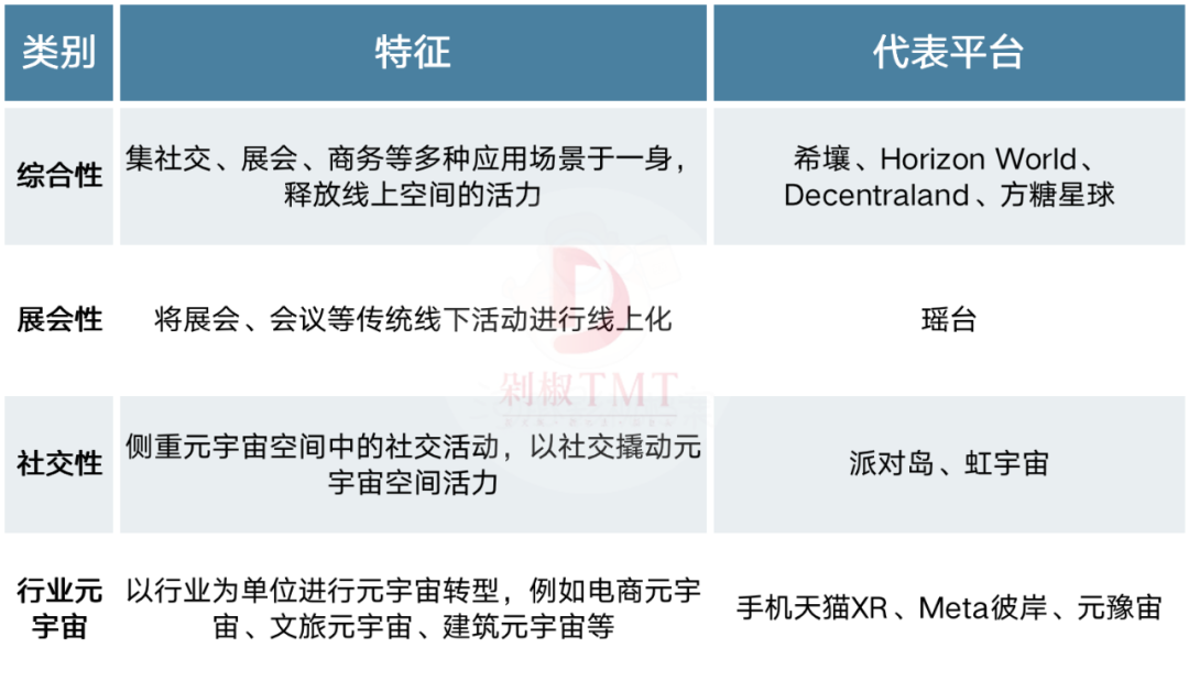 从功能性出发,当前的元宇宙空间可以分为以下几类: