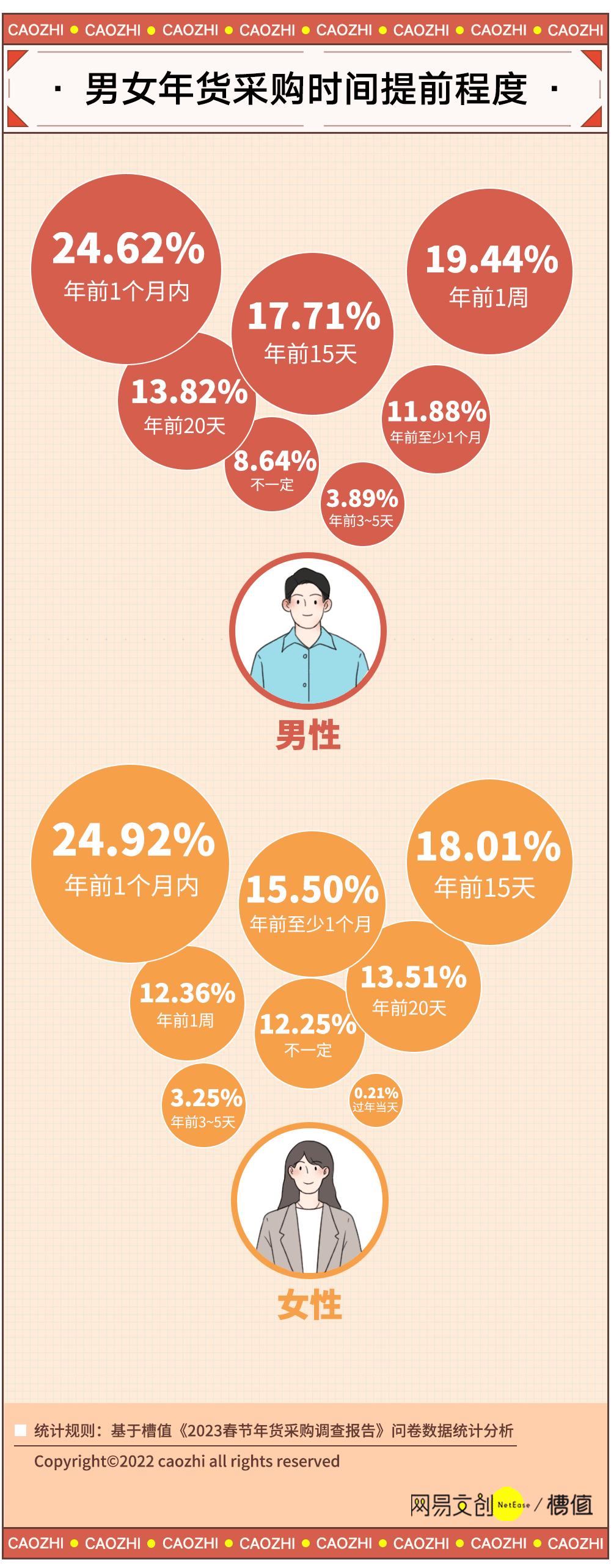 相对于女性而言,男性往往在采购年货时间线上更为随意。