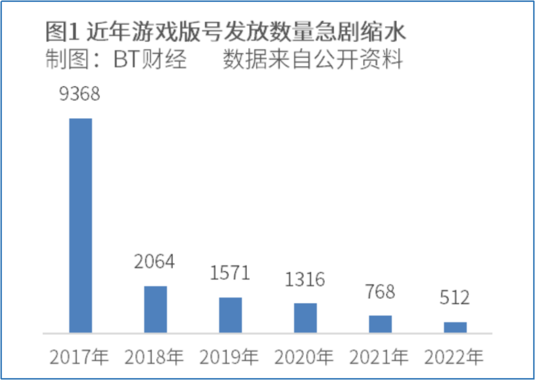 2022年,中国新发游戏版号512个,较2021年减少近三分之一,该数字在2019年和2020年每年高达约1500个。