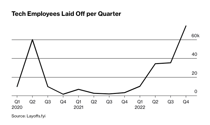 然而,从三伏天到三九天,只需要六个月。随着美联储开始大幅加息,美国股市从去年上半年开始直线下滑,各家巨头的股价大幅下滑,市值缩水过半,财报低于预期,开销最大的人员成本就成为了最先削减的预算,原本火热的招聘市场也急转直下变成了冷酷寒冬。