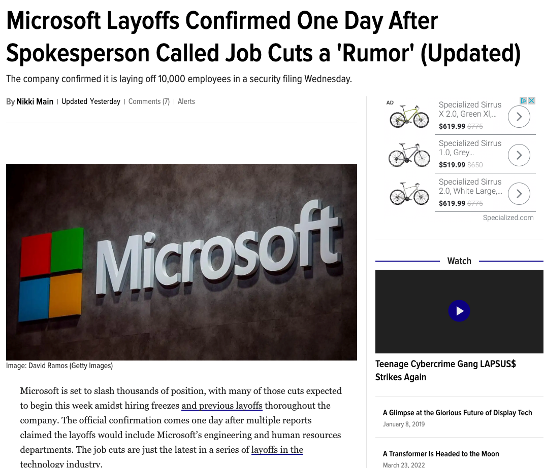 微软昨天正式宣布,计划在全球裁员1万名员工,裁员比例接近5%。讽刺的是,此前匿名社交平台Blind上已经有员工爆料,微软发言人还向美国科技媒体Gizmodo否认裁员消息,称之为“谣言”。或许没有到正式宣布的时候,就绝对不能承认。
