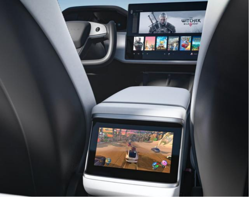 此外,在2021年新款Model S的宣传海报中,屏幕上更是出现了《巫师3》的画面。而如今,就连《赛博朋克2077》这款在PC上都需要高配置的游戏,也已经可以在最近两年的Model S和Model X上流畅运行。