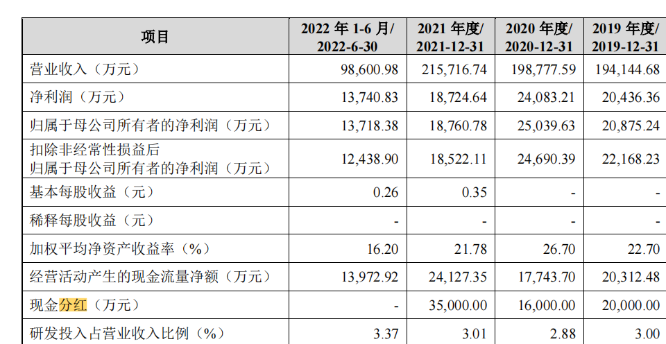 招股书显示,2019年—2022年上半年,环亚科技分别实现营收19.41亿元、19.88亿元、21.57亿元和9.86亿元;同期实现净利分别为2.04亿元、2.41亿元、1.87亿元及1.37亿元,其2021年净利润下降幅度已达22.25%。