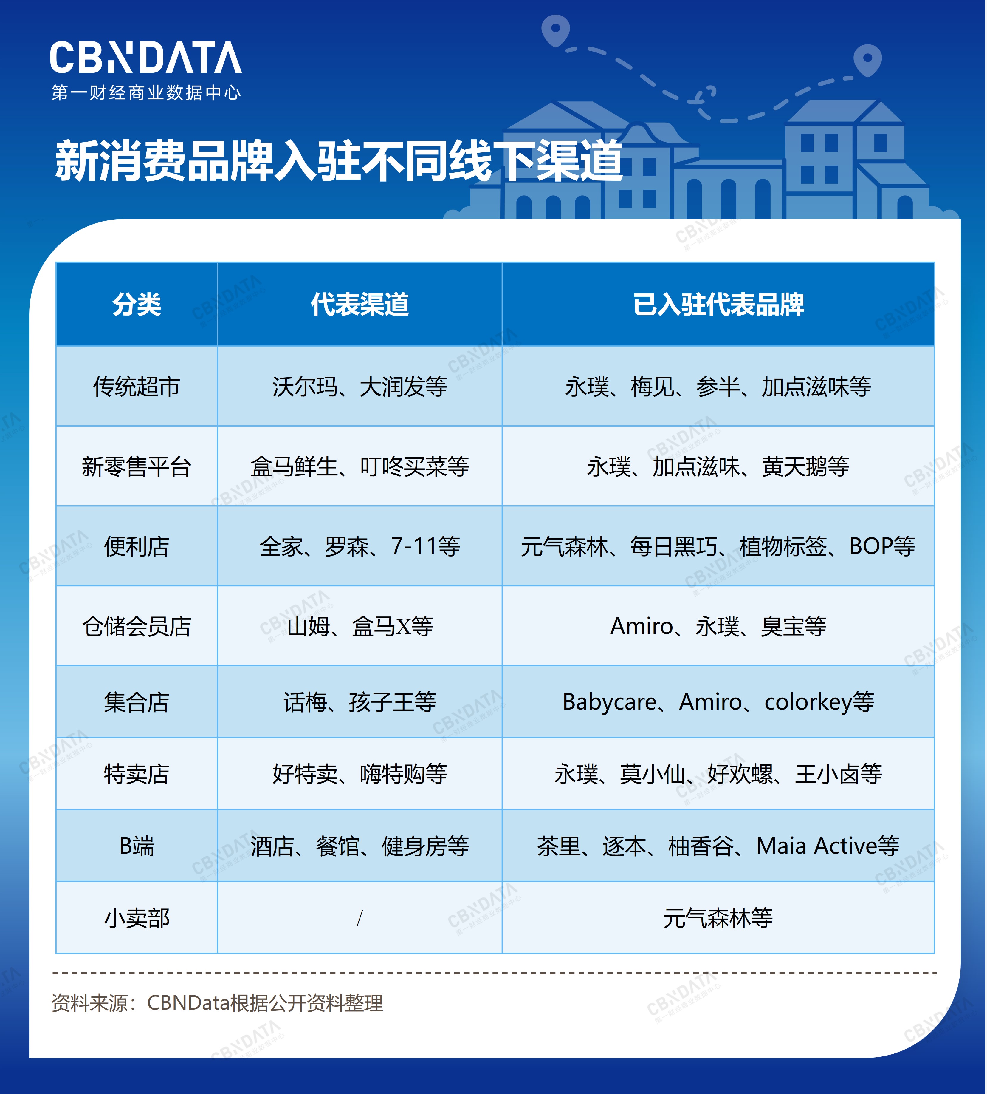 这些都在传递着线下的巨大空间和积极信号,但进驻线下渠道并不简单。对比线上平台,线下渠道的细分程度有过之而无不及。这里不仅有传统超市、便利店、会员店、集合店以及遍布全国大小村镇的小卖部等传统渠道,还有近年涌现的新平台,如盒马鲜生、叮咚买菜等新零售平台,好特卖等特卖渠道,以及遍布全国的酒店、餐馆、健身房等大型B端市场。