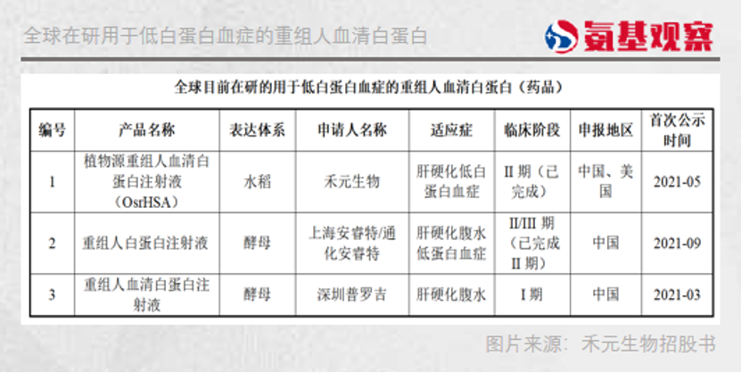 其核心产品植物源重组人血清白蛋白注射液(OsrHSA),是从水稻中提取出重组人血清白蛋白,目前已完成二期临床试验。