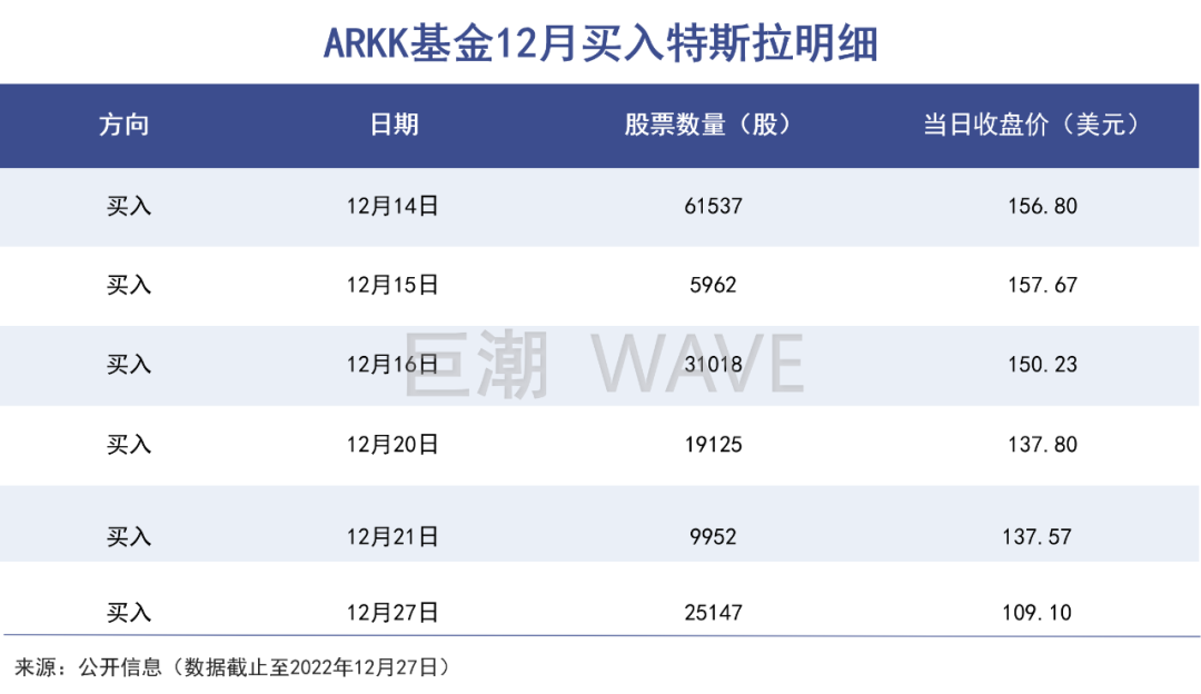作为特斯拉股票的“狂热爱好者”,木头姐即便在特斯拉股价暴跌的时候,也在不断加仓买入。去年12月特斯拉的累计跌幅已经接近70%,ARKK不仅没有进行风险控制,反而将持有的特斯拉股票权重提高了2.8%。