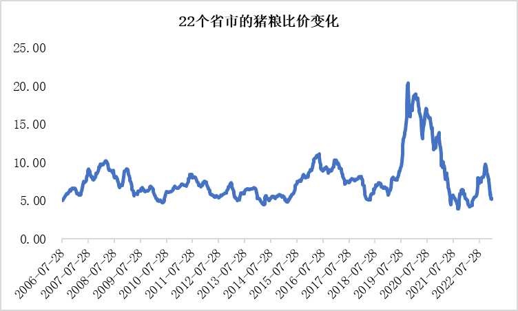 进一步从22个省市的猪粮比价变化来看,其2022年12月23日的猪粮比价就降低到了5.77,2023年1月的每周数据也均小于6。
