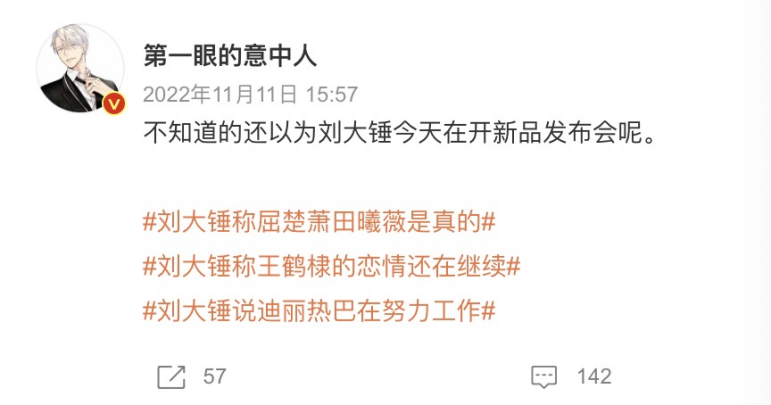 或许是受到葛斯齐一炮打响的启发,内娱狗仔开始频繁走上台前、网红化运营,依葫芦画瓢的直播爆料越来越多,给自己买的热搜也越来越多。比如刘大锤说xxx,张小寒说xxx,原本隐身爆料之后的狗仔,开始把自己当名人一样去运营。