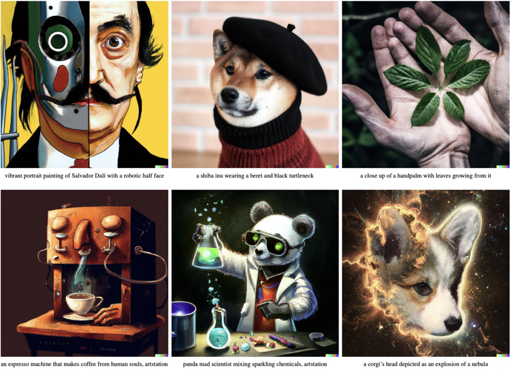 Dall-E2 输出的各种艺术作品。
