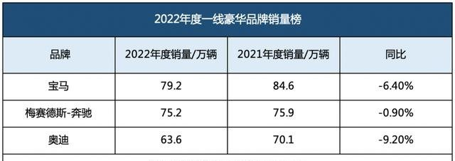 相比之下,2022年,宝马、奔驰、奥迪三大品牌累计销量达到218万台,虽然相比于2021年的230万,有5%左右的下滑幅度,但相比“蔚小理”来说,在豪车阵营,还是无可匹敌的存在。