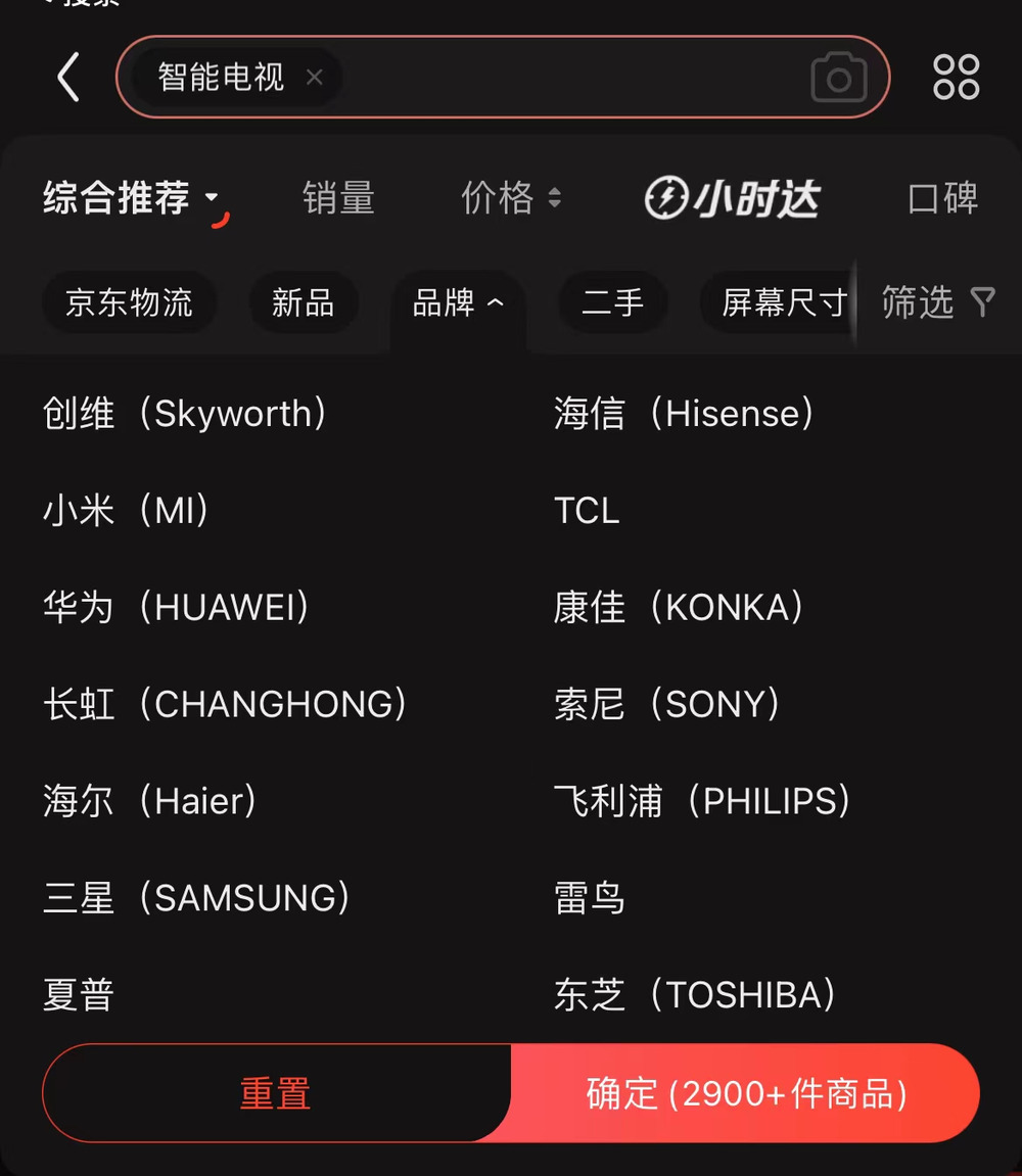 现在再去京东上搜索智能电视,排在前列的则多为国产品牌了。根据奥维云网数据,2019 年国内电视销量前十榜单中,仅有飞利浦和索尼两个国外品牌,位列第 8 和第 10,销量仅百万台出头,约为小米的十分之一。