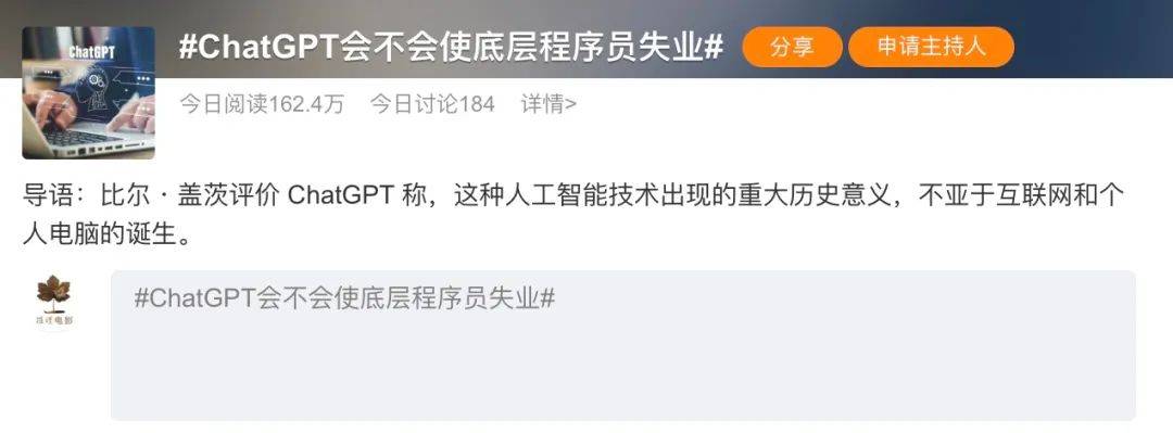 翻开最近的微博,诸如 #ChatGPT会不会使底层程序员失业#、#ChatGPT真的会取代人类吗#、#国内高校已有学生用ChatGPT写论文# 等热搜话题,几乎都蔓延着我们担心工作、学习恐将被AI取代的焦虑情绪。