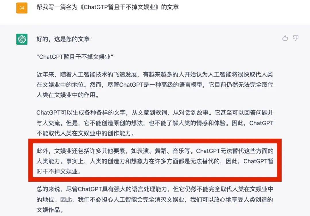 ChatGPT能否颠覆文娱业内容生产等问题,遂成为人们新的焦虑源头
