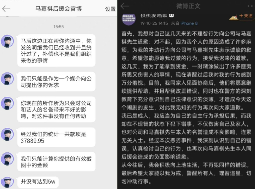 随后马嘉祺后援会官博私信表示,集资的金额并未达到五万,并强调“你现在的所作所为只会对公司和艺人的名誉带来不好的影响”,最终这场闹剧以粉丝向公司和马嘉祺道歉收场。