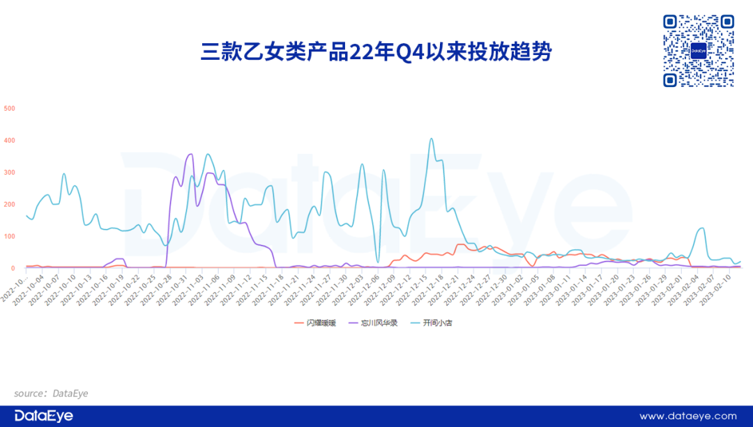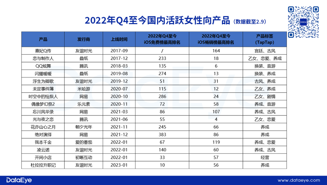 ▲2022年Q4以来国内活跃女性向产品;数据来源:七麦数据/TapTap
