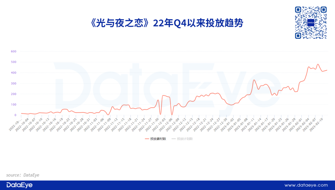 第二种是专注维系核心用户。在投放量上,这类型产品的投放力度下滑,即使在2023年情人节这种重要营销节点,投放量也没有明显提升。DataEye研究院认为,“降本增效”的影响仍在持续,这类型产品更加注重维系核心用户,保持产品品质和活动质量,或许是大环境低迷的“自保方式”。