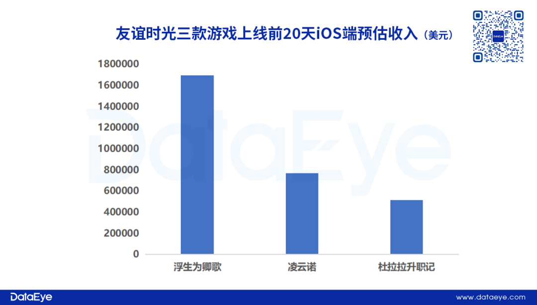 可是具体到产品,友谊时光三代产品却呈现出“一代不如一代”的现象。七麦数据显示,《杜拉拉升职记》上线前20日的iOS端总预估收入排名最低,仅为《浮生为卿歌》1/2。