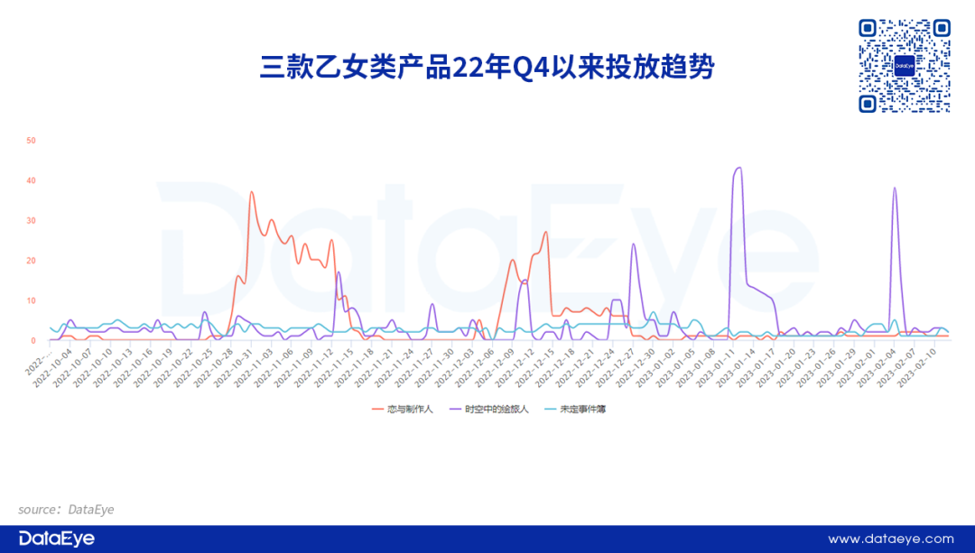 从上文分析数据来看,国内乙女品类马太效应强劲,“四大国乙”占据了国内大多数赛道用户。而在效果广告营销方面,进入2022Q4之后却呈现明显的差异。